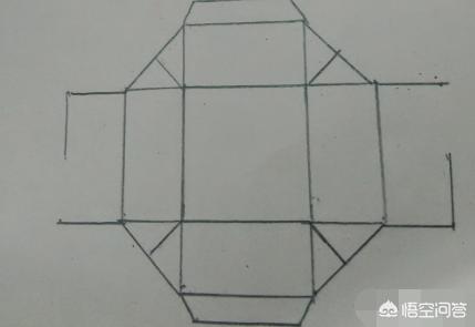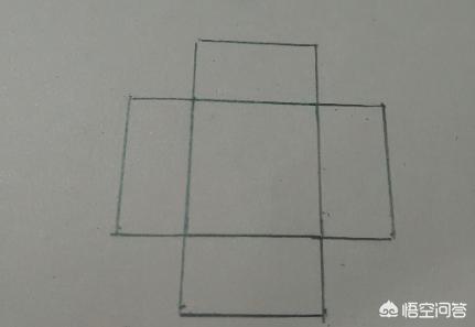3、从正方形四条边向外画四个一样大的长方形,高度是正方形边长的一半,这是盒子的侧面。