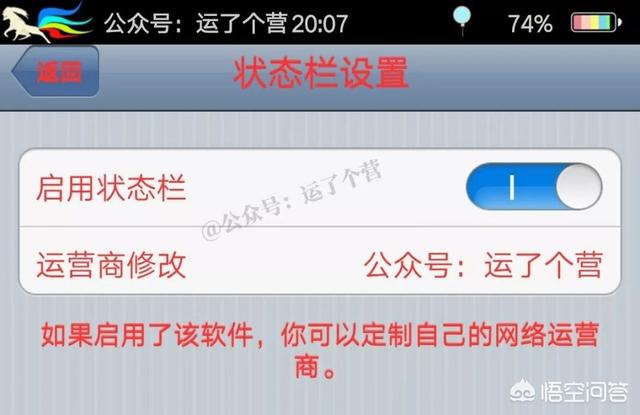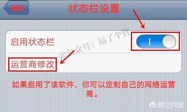 在文末获取软件地址。使用前,请先在手机权限设置中,打开该软件的“悬浮窗”功能;然后再打开软件,在操作界面勾选“启用状态栏”,并点击“运营商修改”;
