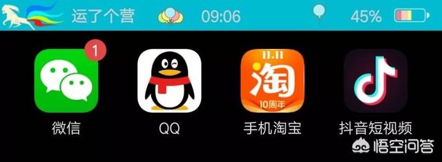 返回手机桌面,就可以看到状态栏的自定义效果了,除了运营商字样发生了变化,信号格也自动更换了颜色,状态栏增添几个小图案,电池用量显示还变成了彩虹条状;