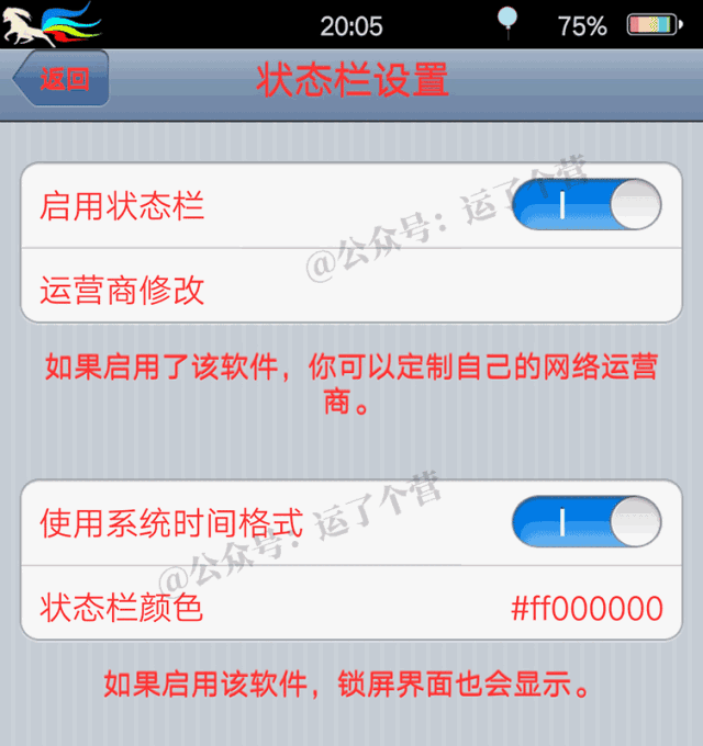 给大家分享一款简单而强大的软件,可以将手机状态栏的运营商名改为你的名字,定制成为你的专属主题,还可以让手机电量变成彩虹条状,很有意思!