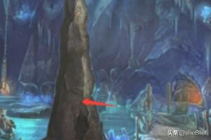 1、炸山洞的炸药是在下面的山洞拿到的。如图,走下面的山洞,然后点击图2指向的位置。