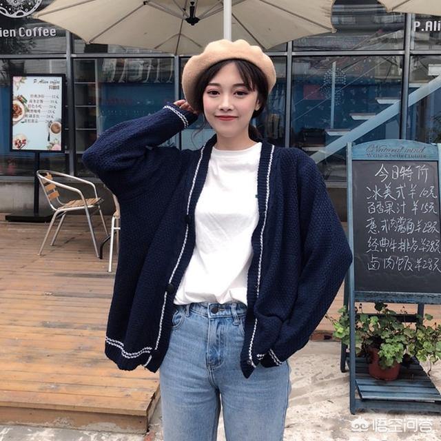 针织开衫外套(深蓝色针织开衫外套搭配什么衣服比较好看)
