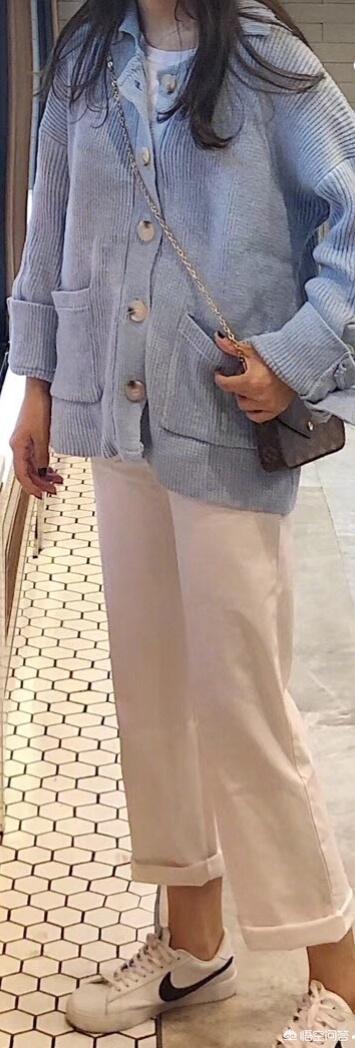 大家都知道T恤就是一种百搭的衣服,无论搭配什么都有它的独特性,蓝色的针织开衫外套内搭着简单的T,其实也是挺好的,再加上一条直筒裤,简直时尚感就立马出来。