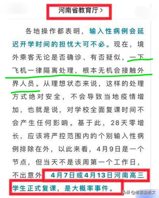不出意外,4月7日或4月13日河南高三学生正式复课,是大概率事件。