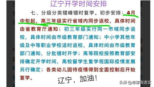 尽管如此,辽宁仍然是决定在4月中旬起,高三年级实行省域内同步返校。
