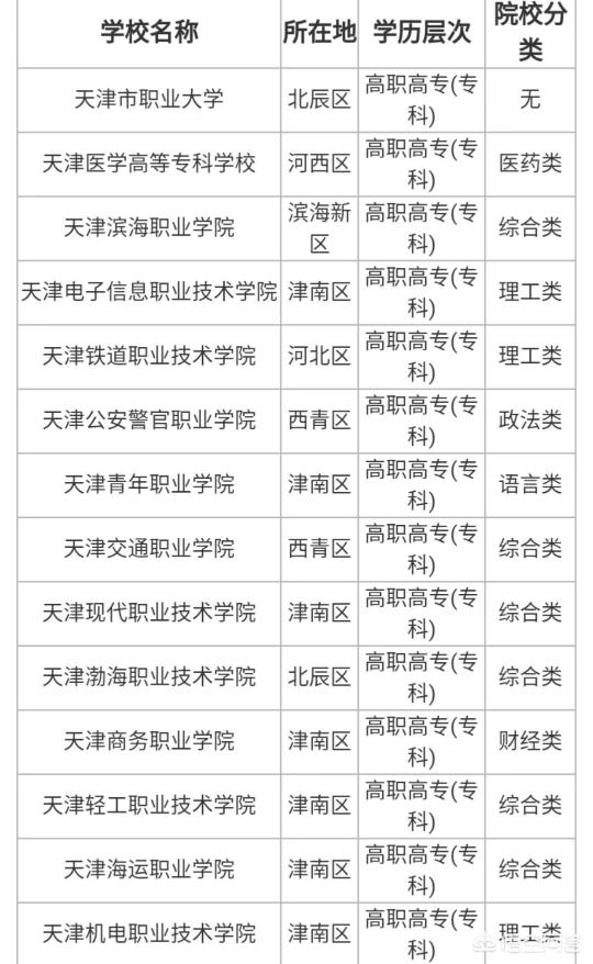 天津市专科院校数量不是很多,共有二十多所,具体名单如下:
