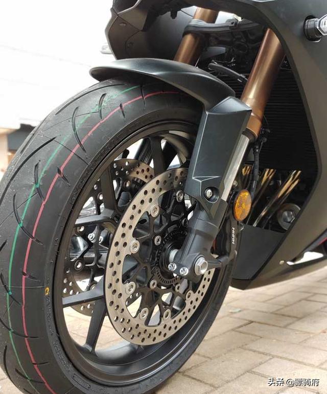配置上也不一样,本田CBR650R的配置规格明显好于川崎NINJA650,例如他采用了前倒立前叉,制动系统采用了前对向四活塞辐射式卡钳,后制动为双活塞卡钳,轮胎规格为前120/70 - ZR17后180/55 - ZR17,后摇臂为铝合金材质。