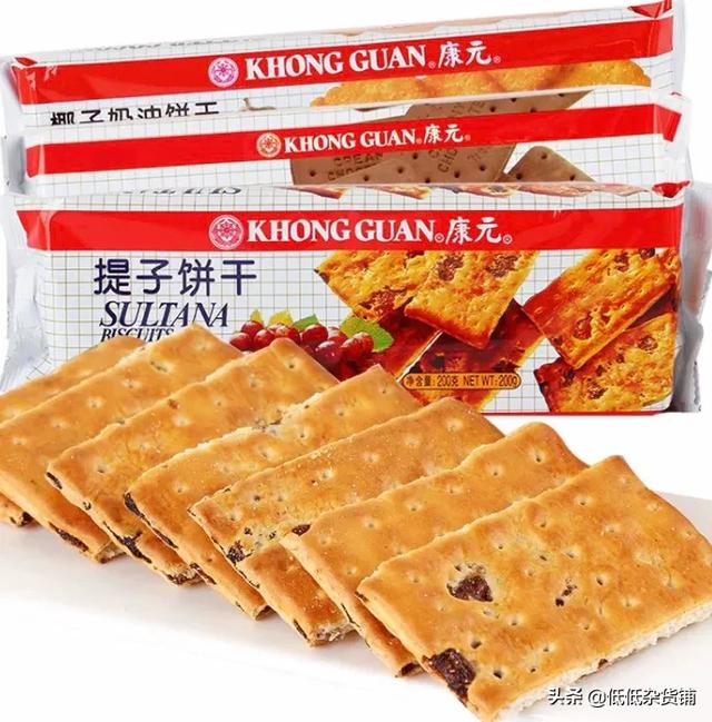 1、康元提子饼干,老式饼干,焦脆不油腻,饼干中间夹着葡萄干,甜度适中,小时候的记忆。