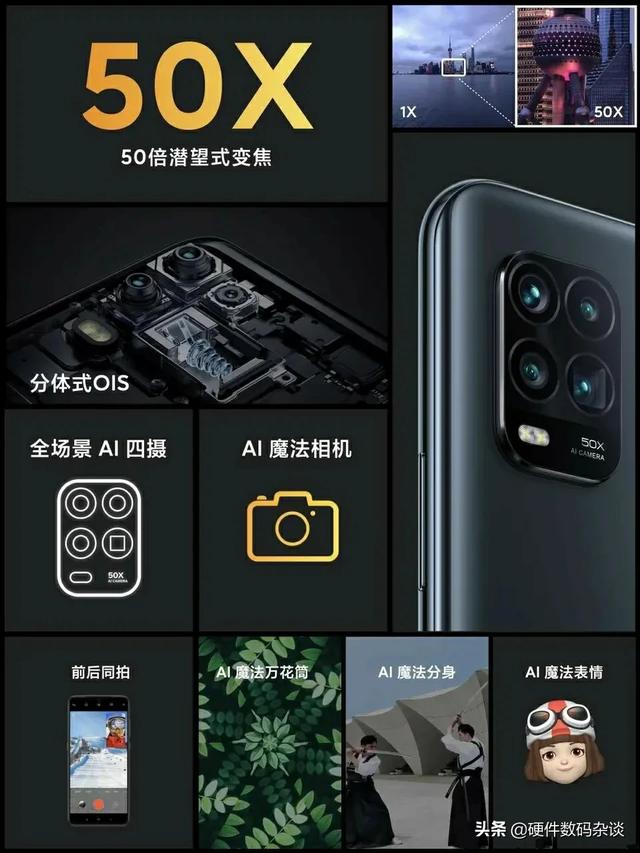 首先,小米10青春版是为年轻一族专门打造的一款性价比机型:轻薄、50倍潜望式变焦、三星钻石原色屏、AI魔法相机功能、前后摄像头同屏拍摄,可以说是Vlog视频拍摄神器。
