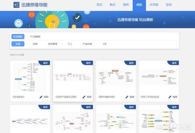 1、打开进入迅捷思维导图官网的“模板”;