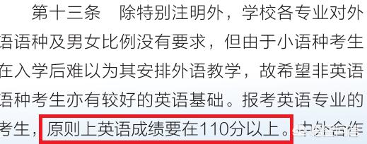如上图所示,要求英语成绩在110分以上,就算数学得了满分,英语学的不好,想报考英语专业,也是难以实现的。