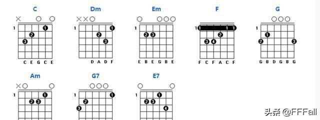 C和弦是由1、3、5三音叠置构成的大三和弦,是大调式的Ⅰ级主和弦,是小调式的Ⅲ级和弦。不够靠近琴衍 ,这是很多初学常犯的错误,要记得手指要尽量靠近琴衍,这是压弦最省力的方式。如果手指按在中间也不太好,靠左边也容易压不紧而发出滋...的杂音。