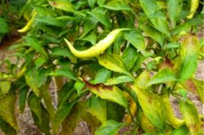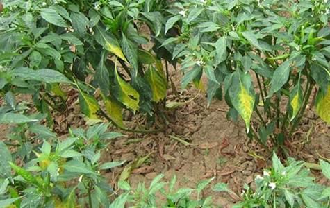 高温。辣椒高温生理障碍,不仅会在夏季露地栽培中发生,冬春季反季节栽培时也可能出现。高温对辣椒的影响主要是根系发育不好,吸收功能减弱,植株呼吸消耗增加。不仅花器发育不全,子房容易枯萎,而且高温妨碍叶片光合作用,减少有机养料对花和幼果的供应,导致落花、落果。叶片本身也会在呼吸和蒸腾强度增加的情况下,加速出现生理反应。露地栽培辣椒在春末夏初,或大棚栽培辣椒在秋初,或露地辣椒在越夏过程中,当气温高于32℃以上,辣椒落叶和落花落果的数量会急剧增加。气温时常超过35℃,地温超过30℃,外加天气干旱或伴有夏季干热风时,辣椒落叶现象会很严重。