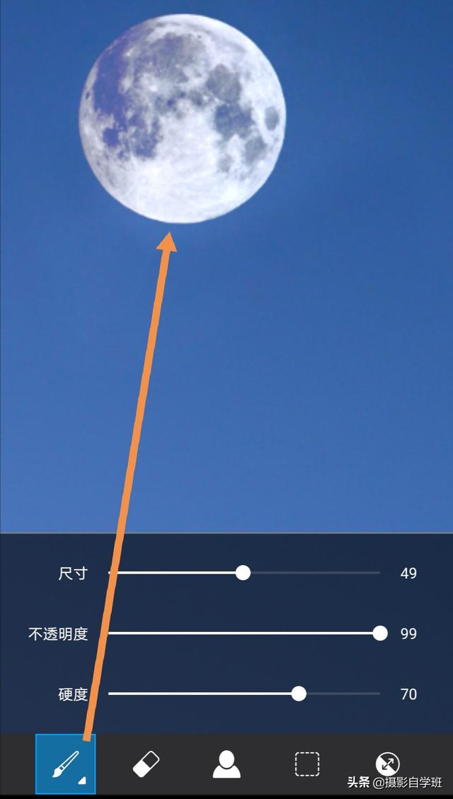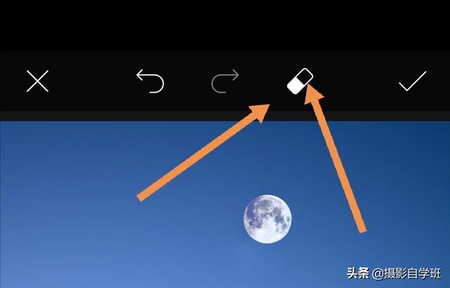 如果您的素材不是这样,可以在点击页面上方的橡皮进入蒙版,在蒙版中只保留月亮就可以了。