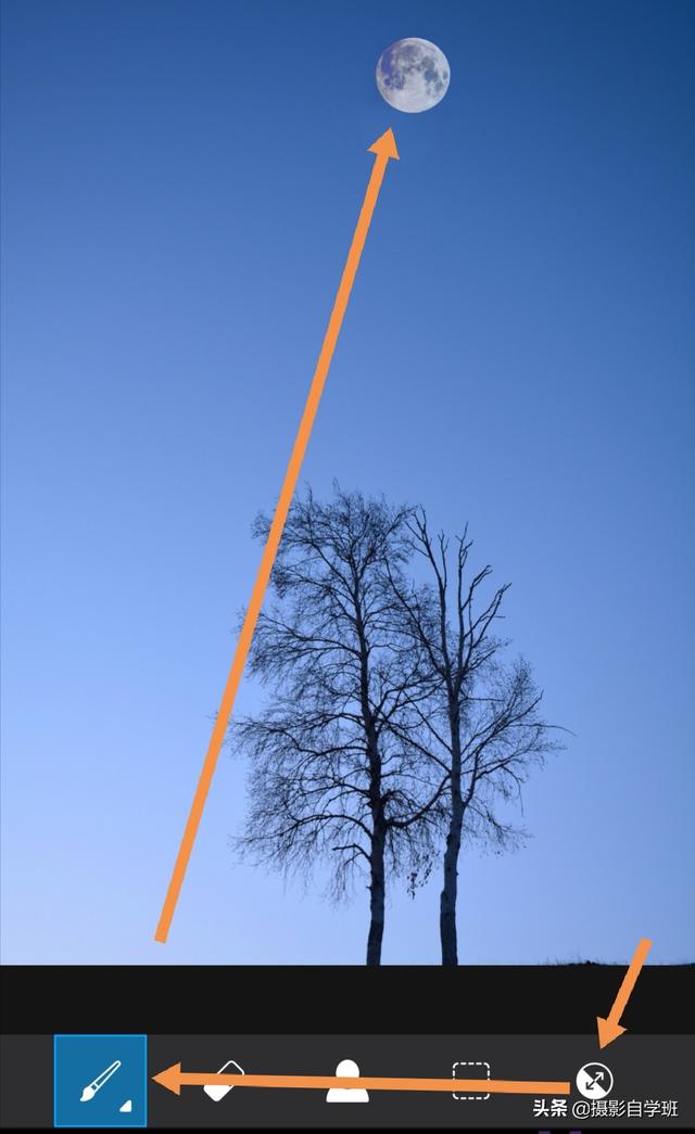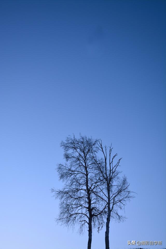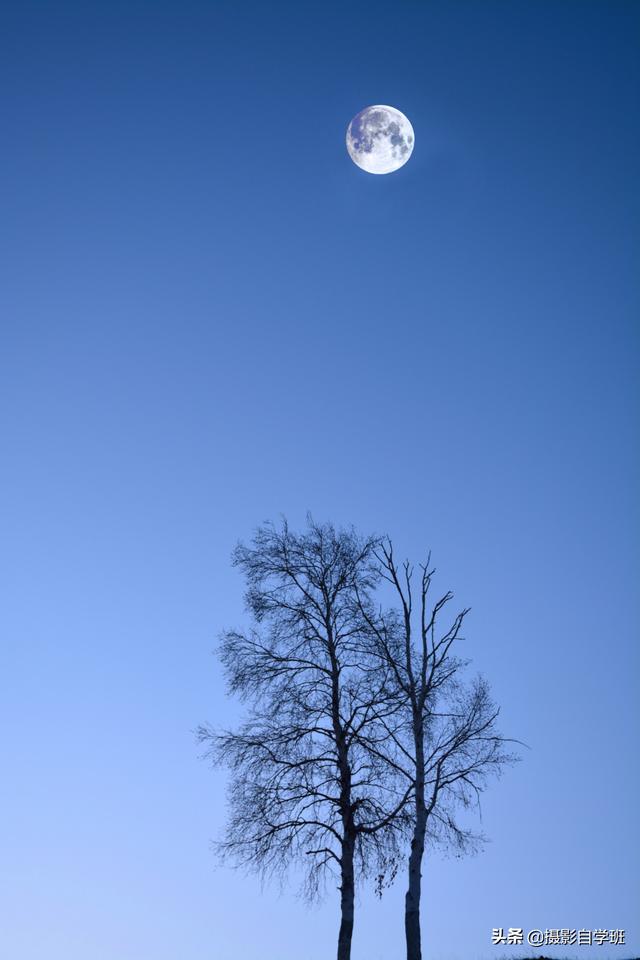 有些照片我们也可以添上点睛之笔,比如下方树的照片,已经足够简约,如果在上方添加上一个小月亮,照片看起来会更灵动。