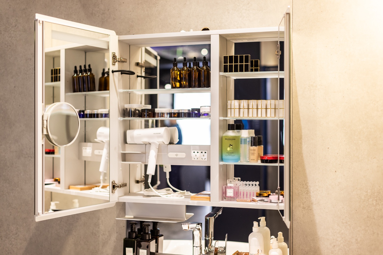 科勒美妆空间,以兼具精致设计与整合功能的产品矩阵,将美妆需求融入卫浴场景。科勒博纳2。0系列镜柜能够实现美妆物品的灵活分区和精巧收纳。其镜面搭载4,000K中性色温光源匀光照明,还原自然光线。同时博纳2。0镜柜还有内置“美妆冰箱”的版本可供选择,为护肤品提供温度适宜的“鲜”存区。科勒希尔维美妍·梳洗脸盆龙头突破了传统洗手龙头的单一功能,以三款不同寻常的出水接头让日常个人洗漱更舒适便捷。科勒以强大空间收纳融合设计美学,打造“妍”之有物的一站式梳妆体验空间。