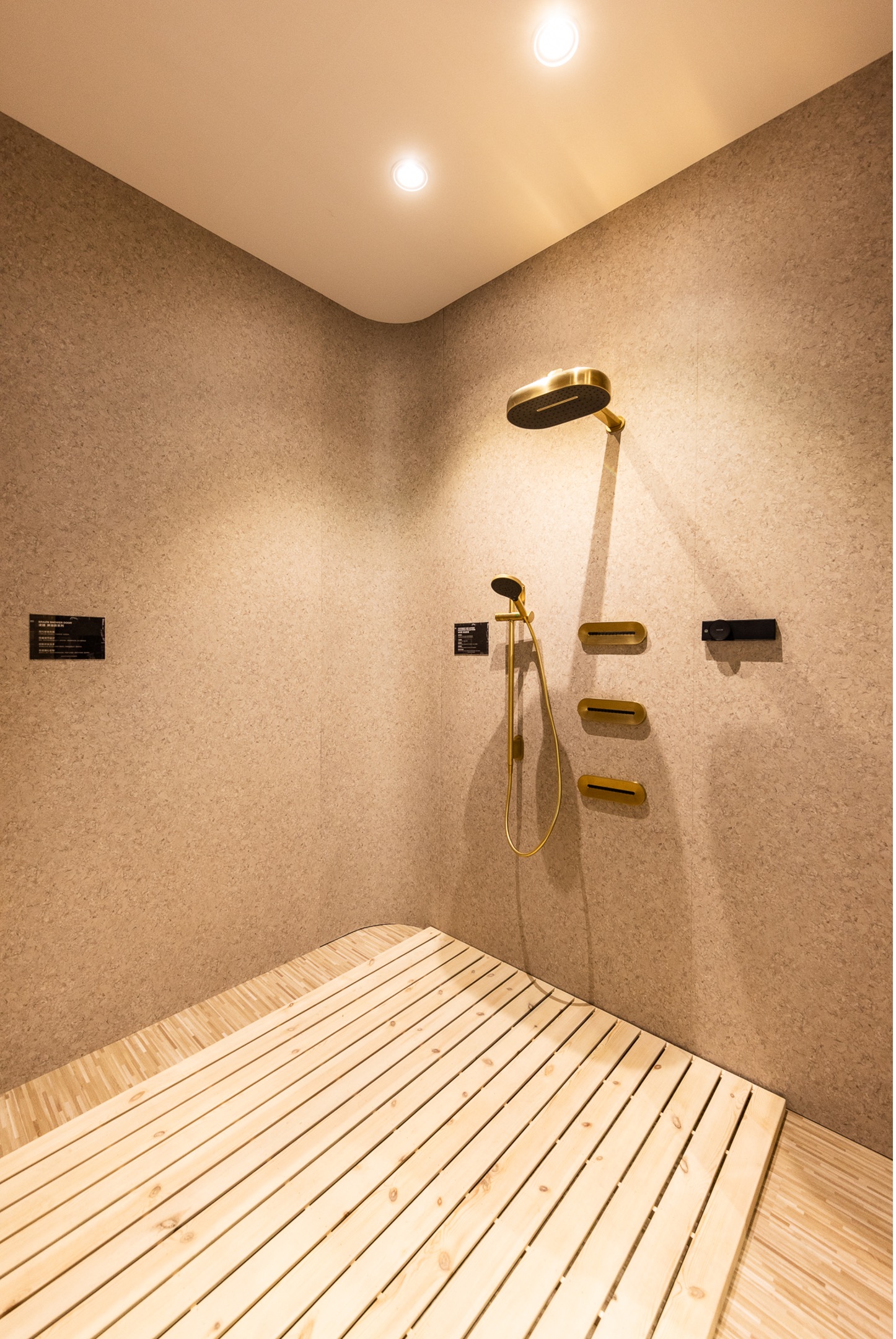 秉承着为消费者“缔造优雅生活”的初衷,科勒于此次建博会上精心打造了“暖浴”“美妆”“关爱”三大主题卫浴套间。在科勒精选暖浴套间中,兼顾温暖简约设计轮廓和实现精准调节的科勒精选水乐章淋浴系统重磅亮相!搭载7种丰富水型和5种预设水疗模式的智控淋浴系统,将操控之美演绎得淋漓尽致,为使用者带来深度沉浸与放松,悦享驭水之趣。同时,流光溢彩的科勒臻彩镀层,让艺术品般的设计更加熠熠生辉,彰显个性的丰富色彩,为浴室搭配带来更多可能。