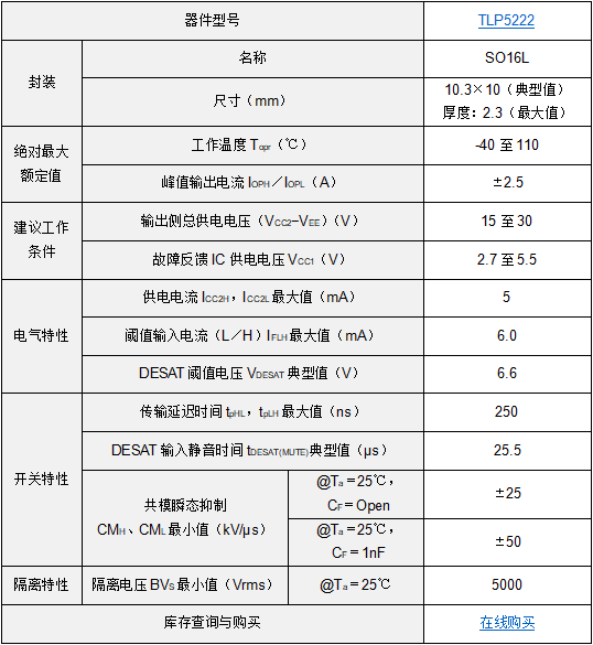 中国上海,2022年8月31日——东芝电子元件及存储装置株式会社(“东芝”)宣布扩大其智能栅极驱动光耦产品线A的智能栅极驱动光耦---“TLP5222”。这是一种可为MOSFET或IGBT等功率器件提供过流保护的隔离栅极驱动IC,内置保护操作自动恢复的功能。该产品于今日开始出货。