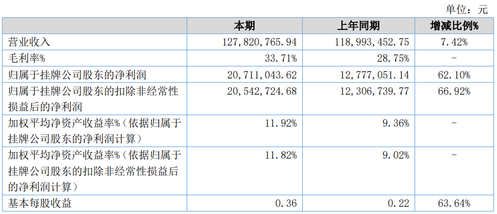 上半年营收同比增长,主要系报告期公司出口国际市场形势较好,国外销售比上年同期有所增长,在国内市场公司提高产品单价,国内销售稳中有升。公司净利润为2071万元,同比上升62.10%,主要系报告期内公司积极扩大产品出口,外销收入在报告期收入中的比例相应提高;美元汇率升值,公司出口款项结汇汇兑收益较大增加导致净利润相应增长。