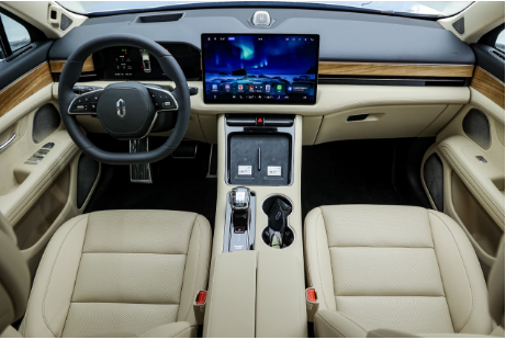 问界M5 EV采用一体式环抱座舱设计,中控台呈“T”型分布,中控台配备的10.25英寸曲面全液晶仪表盘与15.6英寸2K HDR智能中控大屏,无论是流畅度,清晰度还是智能化,在同级别来说都属于顶尖水平。此外,问界M5 EV全车配备高级头等舱式座椅,采用高档Nappa纹真皮和工艺,提供了优秀的质感与触感。