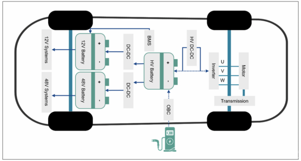 新能源汽车动力总成的简化示意图,来源:Amoker