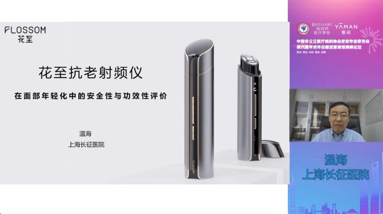 在此次年会上,上海长征医院温海教授作了《花至射频仪在面部年轻化中的安全性和功效性评价》的学术报告。据悉,此次报告主要针对FLOSSOM花至开展的多中心人体安全性临观研究进行阶段性成果汇报。