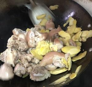 第六步、把猪脚也放锅里一起和姜片一起炒1-2分钟
