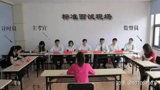 进入考场有七位考官坐在你对面,旁边还有计时员、计分员和监督员。
