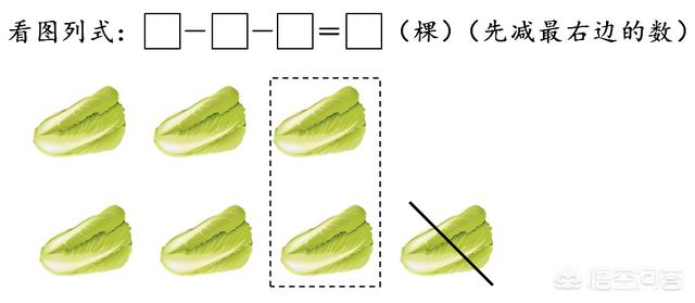 再分类来看连减看图列式题,建立初步的总数被分割后的“还剩多少”的概念。如下图所示: