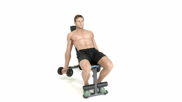上斜弯举也可以给予肌肉很强的泵感,可以针对自由力量来采用这个训练,不必拘泥于大重量训练当中,训练时,调节座椅呈现上斜平躺式,双手抓举哑铃,统一发力向上,上臂尽可能与身体保持静止平衡。