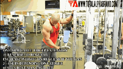 训练技巧:这个训练动作更适合采用轻重量做高次数(每组10~15次),这样能更好地促进肱三头肌增长。这个训练动作非常适合在肱三头肌训练的最后阶段进行,可以很好地孤立刺激肱三头肌,并促进肱三头肌充血。