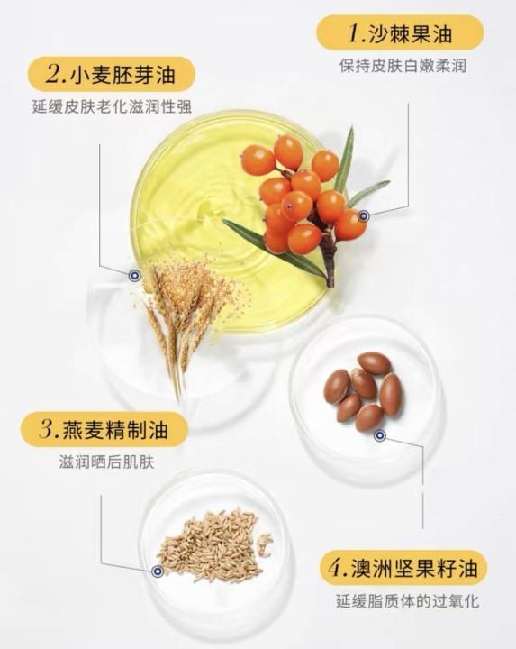 除了各种防晒成分,最值得一说的它特添了4重植物果油,养肤抗污染一步到位,这效果都快赶上水乳之类的护肤品了。