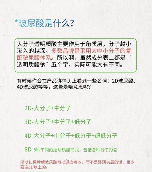 一般玻尿酸都是3D、4D,但是我小看它了,它是8D的玻尿酸,可以把更多的超低分子的玻尿酸粘附在皮肤表面,在慢慢向下渗透,比3D、4D的玻尿酸更易渗透。