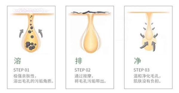 它的原理是以油溶油:霍霍巴油渗透性强,可促进硬化的黑头松动溶解,轻轻按摩可帮助黑头断裂。