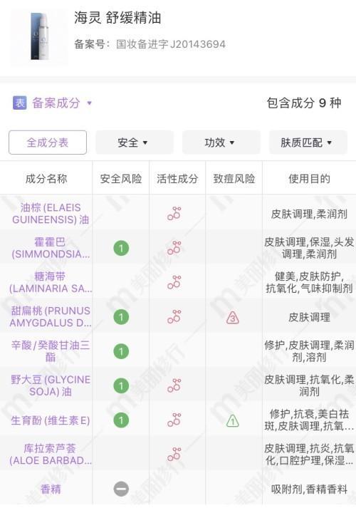 成分表也一路开绿灯~