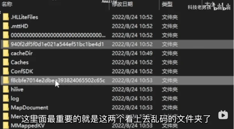 UP主发现,很多视频、音频文件,微信居然存了好几份,而且是在不同的文件夹下,这些文件夹的名称也都是“乱码”(即好友微信号的MD5值)。