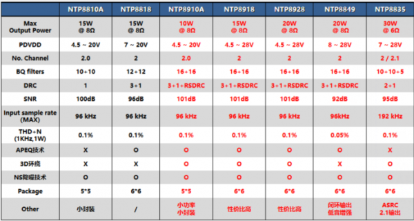 在DSP性能方面:NTP8918拥有多达32段可自由调节EQ点和高效精准的DRC功率控制;