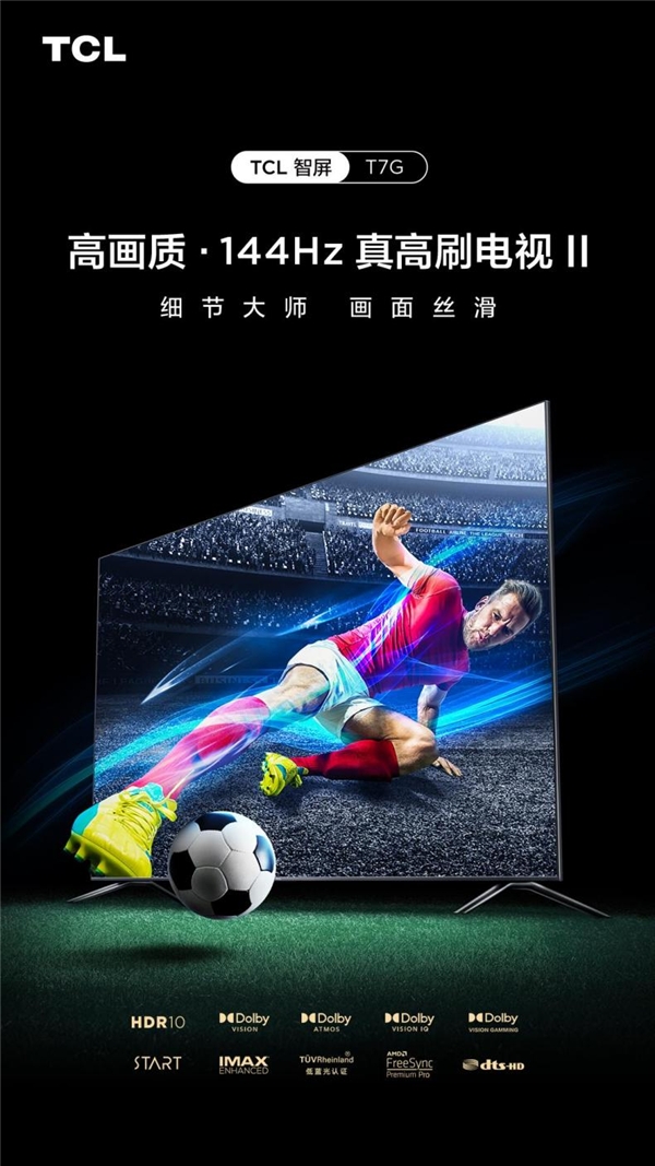 电视发展到现在,已经不单单是用来追剧了。但我确实没有想到,球迷朋友、追剧爱好者、家庭影院拥护者、刘耕宏女孩们居然能同时给我推荐这款4k电视机。他们说!“刷新率够高,画面表现流畅细腻,再快的进球都看得清楚”,他们说!“IMAX认证、影院级4k画质,在家就能享受电影院的感觉”……能满足各路玩家的需求,这TCL T7G高画质·144Hz真高刷电视II到底什么来头?