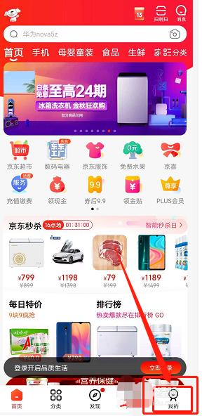 2、进入京东首页,点击我的选项,